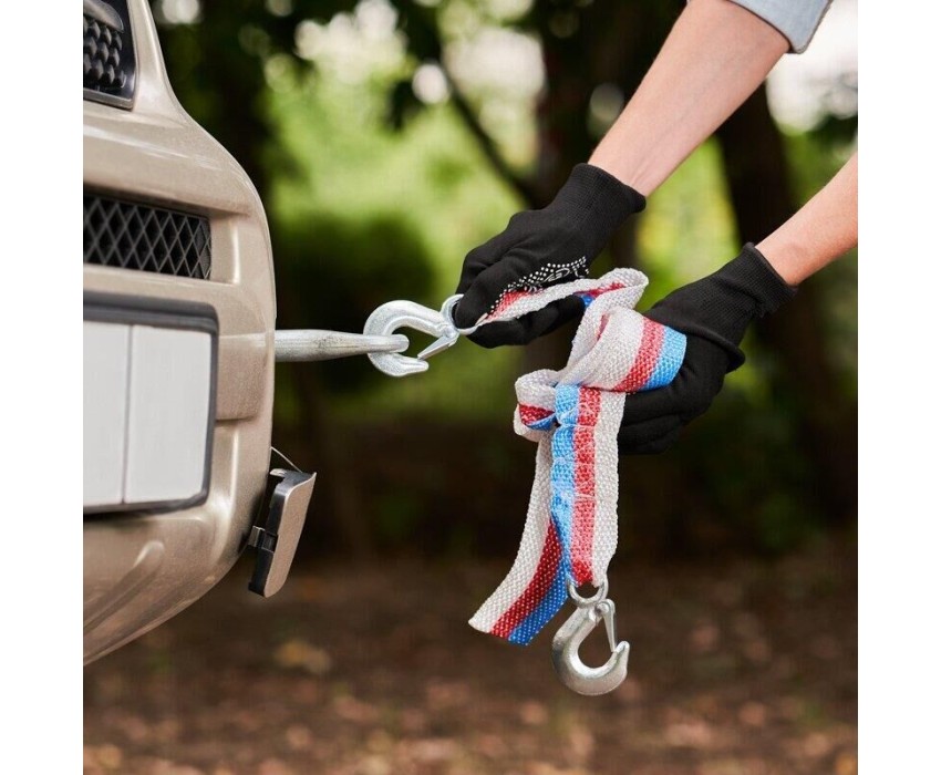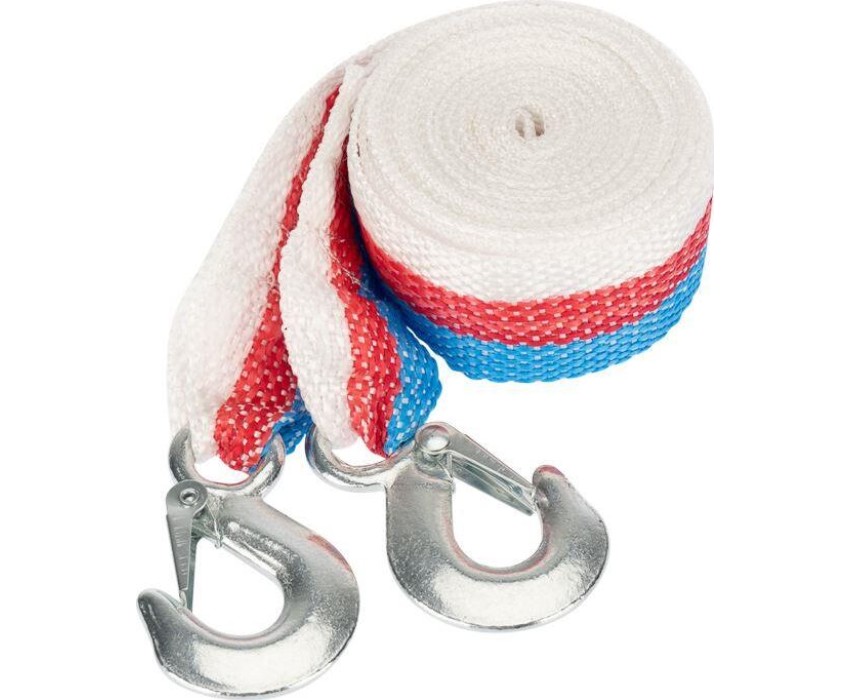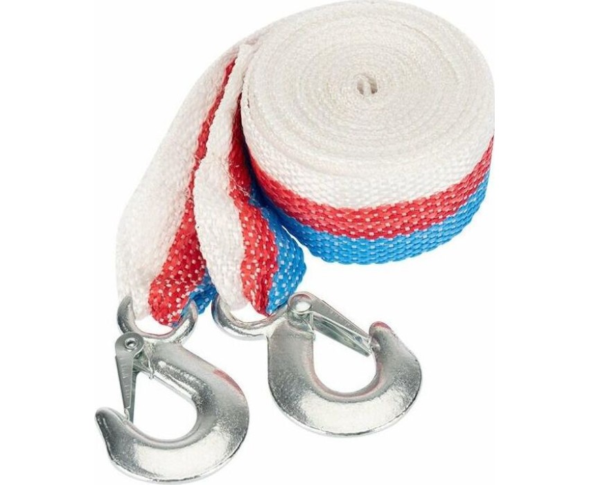 Буксировочный трос предназначен для надежного соединения двух автомобилей с целью безопасной транспортировки или буксировки одного автомобиля с помощью другого. Является незаменимым элементом в случае поломки автомобиля. Трос изготовлен из полипропилена, отличающегося стойкостью к низким температурам и резкому изменению влажности. На концах изделия расположены металлические крюки с пружинным фиксатором. Трос обладает грузоподъемностью до 3,5 тонн и при продолжительной эксплуатации не меняет свои линейные размеры. Длина изделия – 5 м, что обеспечивает достаточное расстояние между автомобилями, позволяет водителям сохранять безопасную дистанцию и маневрировать во время движения. Для удобства хранения поставляется в индивидуальной упаковке.