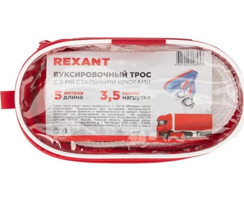 Трос REXANT (80-0223) Трос буксировочный 3,5т, 5м, с двумя крюками