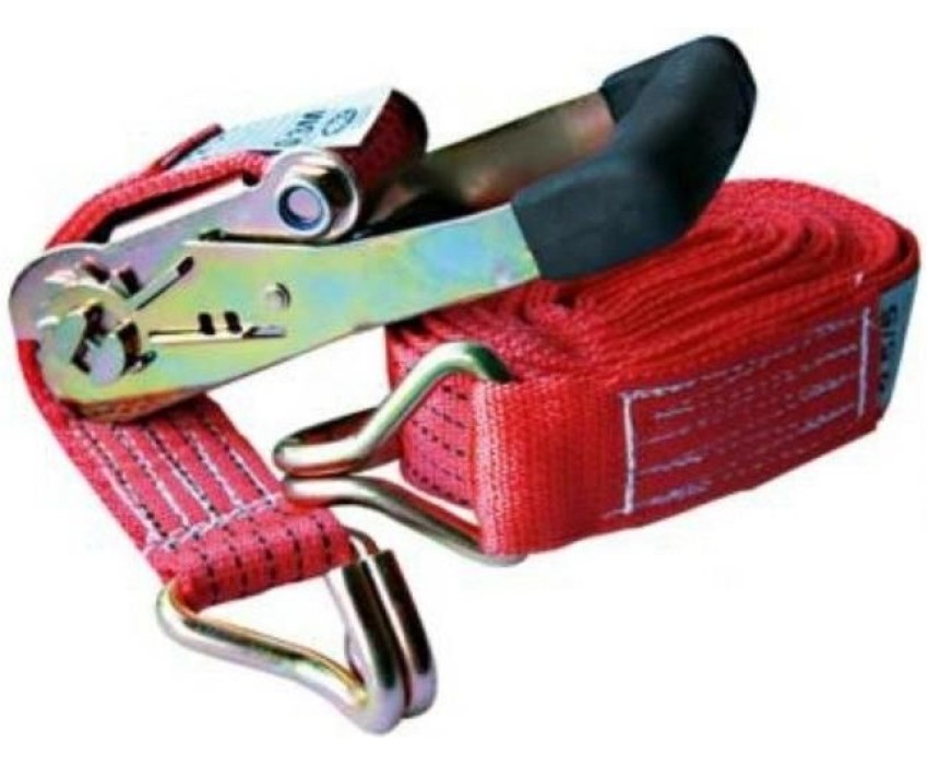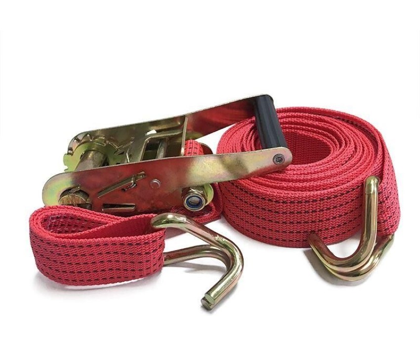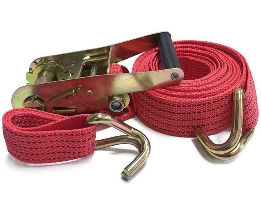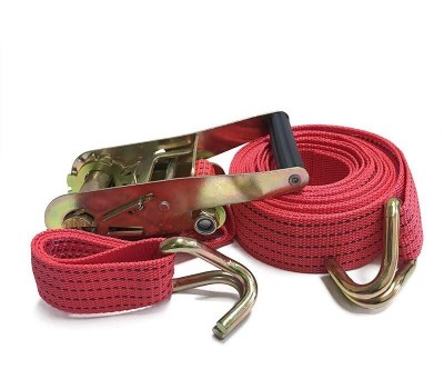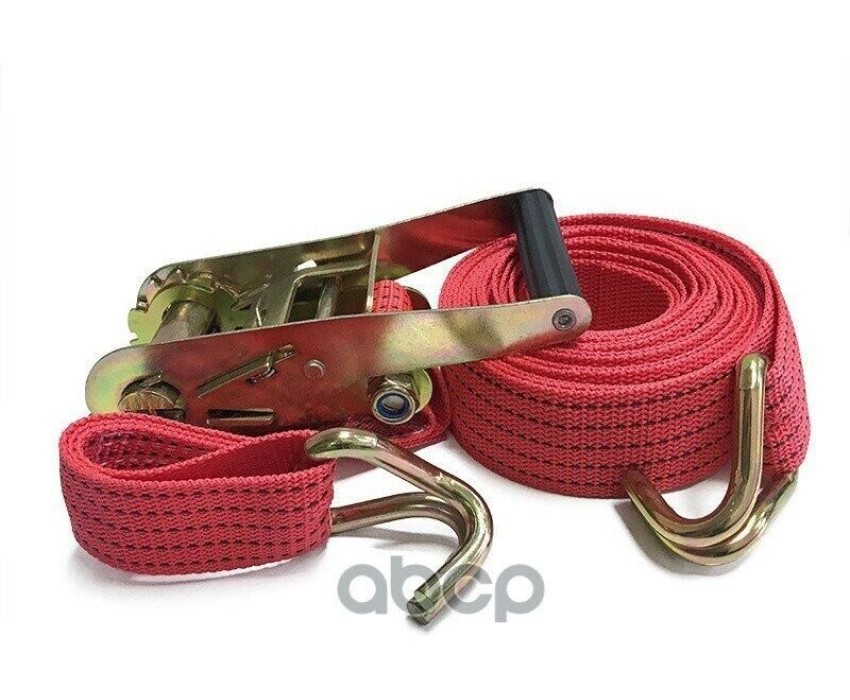 Выдерживают нагрузку на прямое стяжное усилие – 2 тонны и стяжное усилие при обхвате – 4 тонны. Характеристики • Храповый стяжной механизм из стали с ручкой типа «Стандарт» (ручка имеет пластиковую ребристую вставку в районе удерживания в ладони для комфортного использования в любых, в том числе, зимних условиях). • Высокопрочная лента из полипропилена 50 мм. Имеет прочные швы. Отличается морозостойкостью и устойчивостью к агрессивным средам. Длина ленты 8 метров. • J – образные стальные крюки.