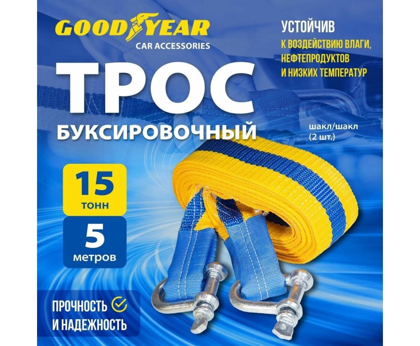 Трос буксировачный GOODYEAR Трос буксировочный с шаклами GY 15 тонн, 5 метров