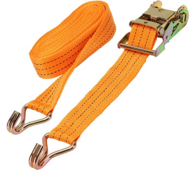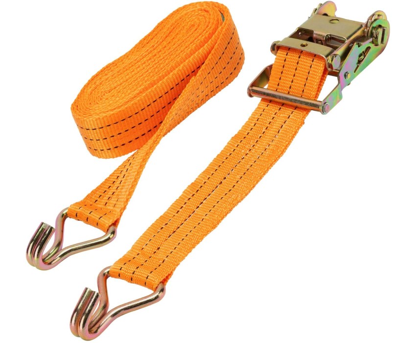 Багажный ремень с крюками Stels 54386 шириной 5 см и длиной 8 м, с храповым механизмом, предназначен для фиксации грузов на решетчатых конструкциях, например, открытых автомобильных багажниках, а также в прицепах. Пригодится для транспортировки различных предметов. Преимущества Износостойкость — ремень изготовлен из прочного и морозостойкого полипропилена, крюки из углеродистой стали устойчивы к деформации. Надежная фиксация груза во время движения и маневров автомобиля — допустимая разрывная нагрузка составляет 800 кг, стальные крюки крепко удерживают натянутый ремень. Комфортное и быстрое затягивание ленты — ремень снабжен храповым механизмом. Удобное хранение — ремень весит 1,1 кг и в сложенном виде очень компактен.