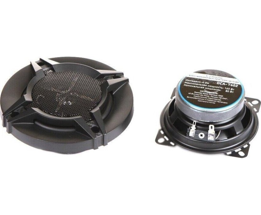 Коаксиальные двухполосные колонки автомобильные. Частотный диапазон 80Гц-20КГц. Форма динамиков круглая. Размер динамика 10 см (4 дюйм.). Номинальная мощность 90 Вт. Максимальная мощность 180 Вт. Чувствительность 86 дБ. Импеданс 4 Ом. Глубина установки 43 мм.