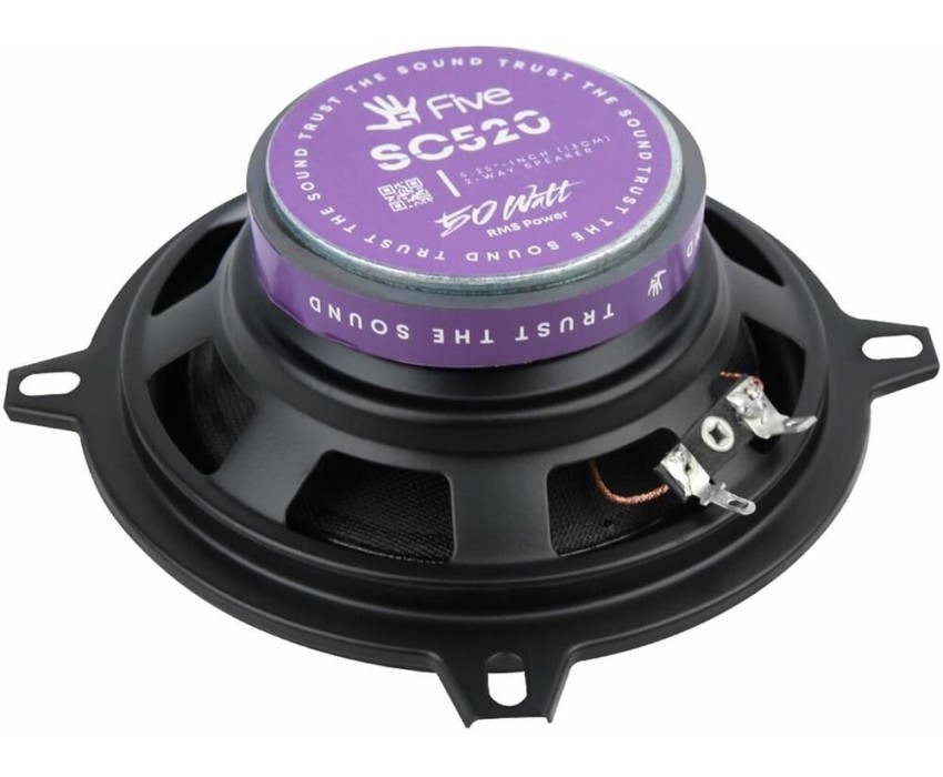 5,25-дюймовый (13,3 см) 2-полосный коаксиальный динамик Бумажный конус с краем из бутилкаучука, штампованная стальная корзина, 30-миллиметровый твитер из майлара, Частотная характеристика: 75 Гц ~ 20 кГц, Чувствительность: 88 дБ / Вт / м Магнит: 7070 x 10 мм (5,4 унции) Звуковая катушка: 25 мм KSV, Номинальное сопротивление: 4 Ом Номинальная мощность (среднеквадратичная): 50 Вт Пиковая мощность (PMPO): 150 Вт Монтажная глубина: 44 мм (1,73 дюйма) Диаметр установочного отверстия: 117 мм (4,6 дюйма)
