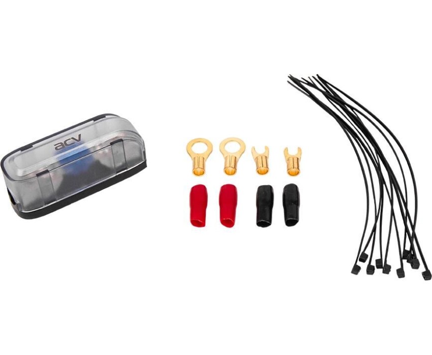 Заземляющий кабель Длина заземляющего кабеля: 1 м Толщина жилы заземляющего кабеля: 0,20 х 27 мм Наружный диаметр заземляющего кабеля: 6.5 мм Толщина нити заземляющего кабеля: 0,20 мм Силовой кабель Длина силового кабеля: 5 м Толщина жилы силового кабеля: 0,20 х 27 мм Толщина нити силового кабеля: 0,20 мм Особенности модели Материал проводника: омедненный алюминий Общие характеристики Клеммы: Круглые 8AWG -2 шт, вилочные 8AWG – 2 шт Держатель предохранителя: Mini ANL + предохранитель Mini ANL 60А Диапазон рабочих температур: -40 +65 С Межблочный кабель Длина межблочного кабеля: 5 м Толщина жилы межблочного кабеля: 0,12 х 30 мм Толщина нити межблочного кабеля: 0,12