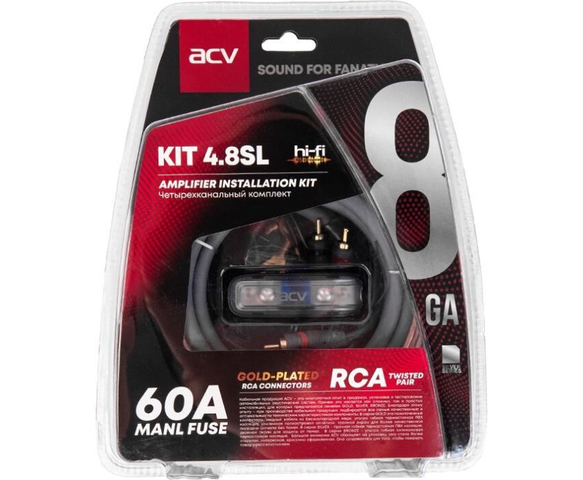 Комплект проводов ACV KIT 4.8SL (Silver=ECO) (4-кан усил-ля 8AWG/Mini ANL 60A)
