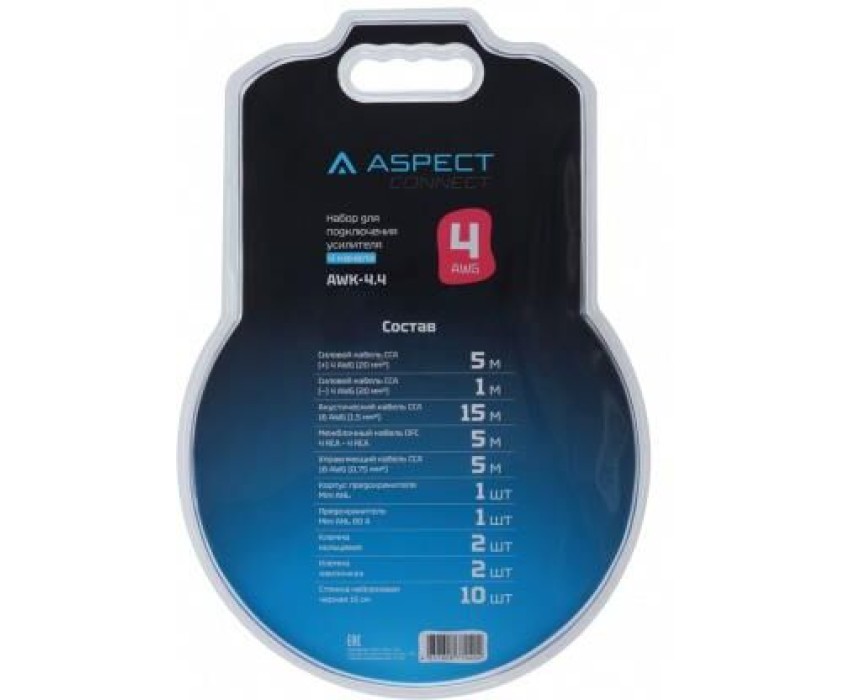 Комплект проводов ASPECT AWK-4.4 для 4-кан. усилителя, омедненный алюминий (ССА), 4AWG, 4RCA-4RCA