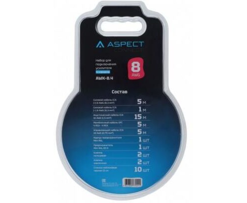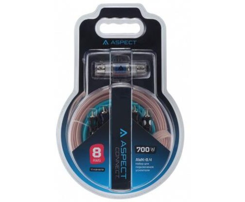 Комплект проводов ASPECT AWK-8.4 для 4-кан. усилителя, омедненный алюминий (ССА), 8AWG, 4RCA-4RCA