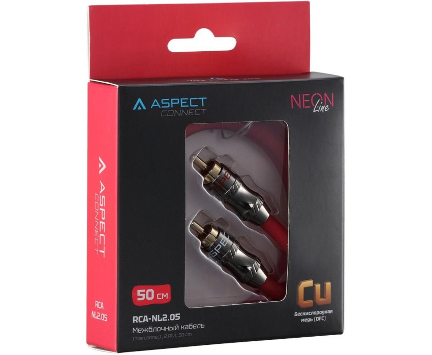 Кабель ASPECT RCA-NL2.05, Neon Line, коаксиал, OFC, 2 экрана, 2RCA-2RCA, 0.5м