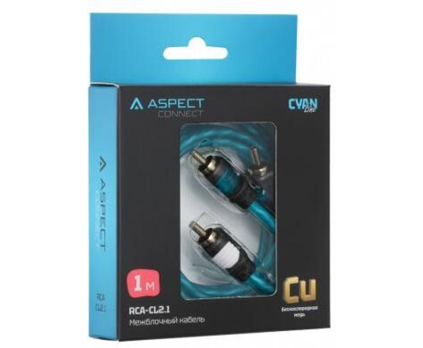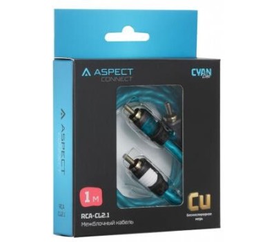 Кабель ASPECT Межблочный кабель RCA-CL2.1, Cyan Line, витая пара, OFC, 1 экран, 2RCA-2RCA, 1м