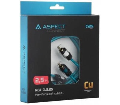 Кабель ASPECT Межблочный кабель RCA-CL2.25, Cyan Line, витая пара, OFC, 1 экран, 2RCA-2RCA, 2.5м