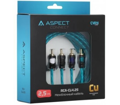 Кабель ASPECT Межблочный кабель RCA-CL4.25, Cyan Line, витая пара, OFC, 1 экран, 4RCA-4RCA, 2.5м