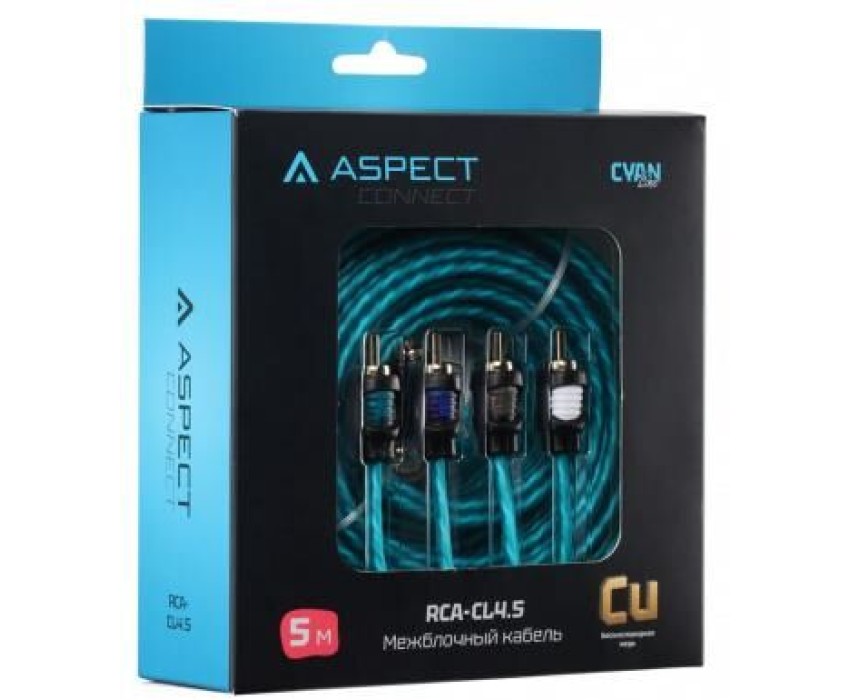 Кабель ASPECT Межблочный кабель RCA-CL4.5, Cyan Line, витая пара, OFC, 1 экран, 4RCA-4RCA, 5м
