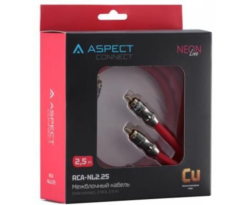 Кабель ASPECT Межблочный кабель RCA-NL2.25, Neon Line, коаксиал, OFC, 2 экрана, 2RCA-2RCA, 2.5м