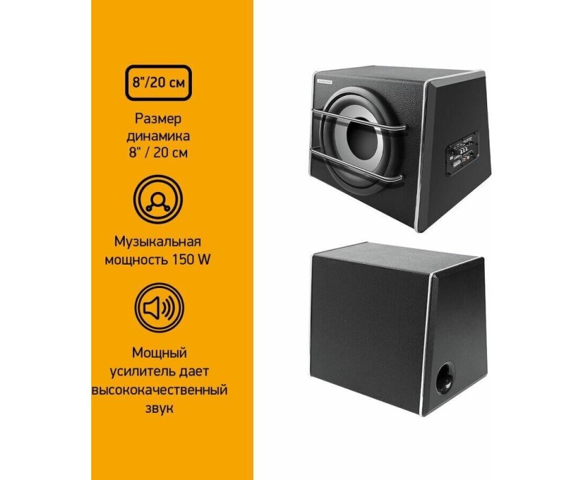 Вид сабвуфера активный. Тип корпуса сабвуфера закрытый ящик. Номинальная мощность 150 Вт. Максимальная мощность 150 Вт. Количество НЧ динамиков 1.