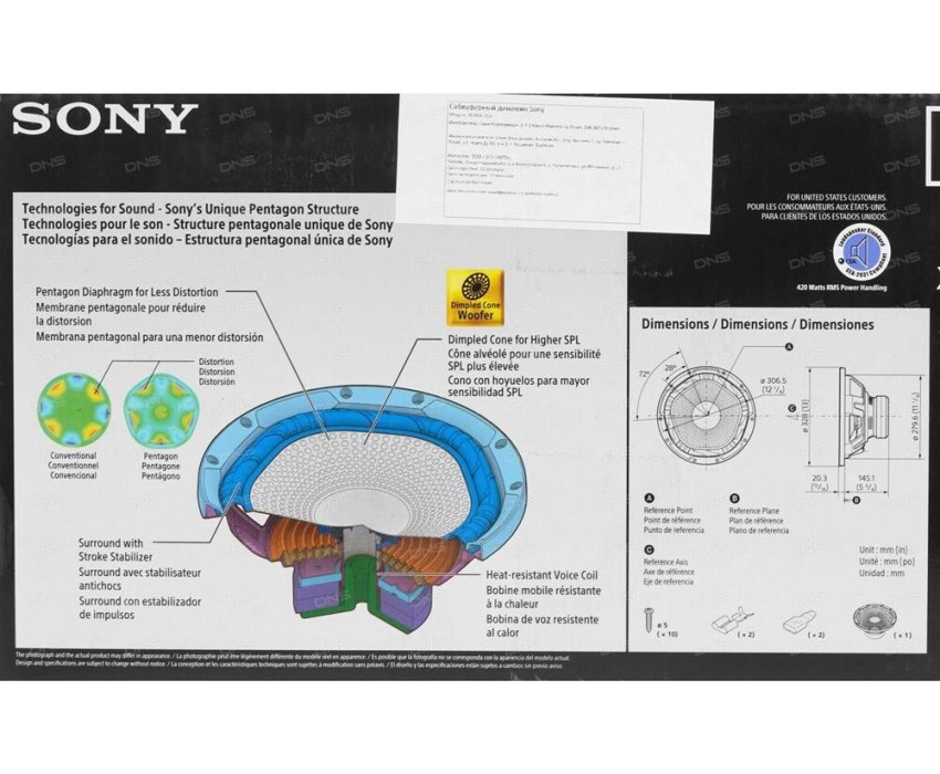 Тип сабвуферный динамик Модель Sony XS-NW1200 Количество динамиков 1 шт Основные характеристики и питание Номинальная мощность 300 Вт Максимальная мощность 1800 Вт Импеданс (Ом) 4 Ом Двойная обмотка нет Корпус нет Параметры динамика Диаметр динамика (дюйм) 12" Особенности конструкции Материал подвеса резина Материал магнита ферритовый