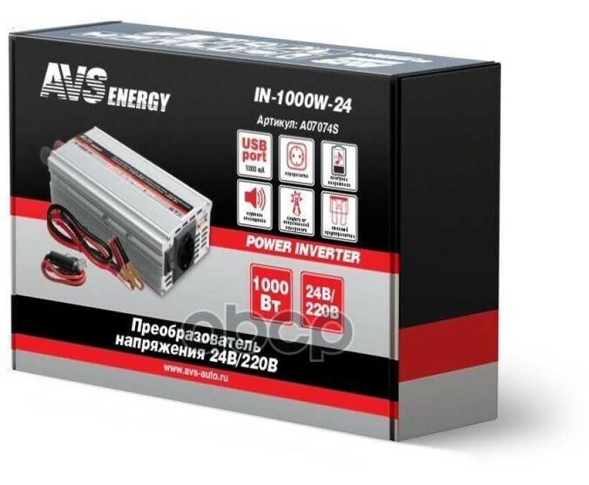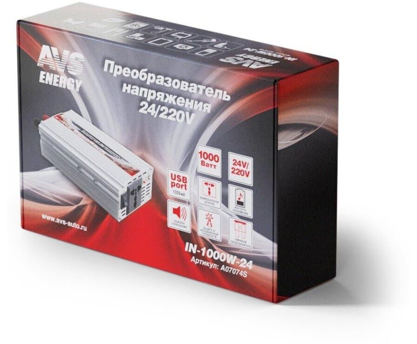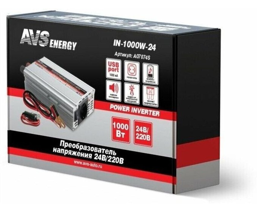 Автоинвертор AVS IN-1000W-24 24/220V (A07074S)