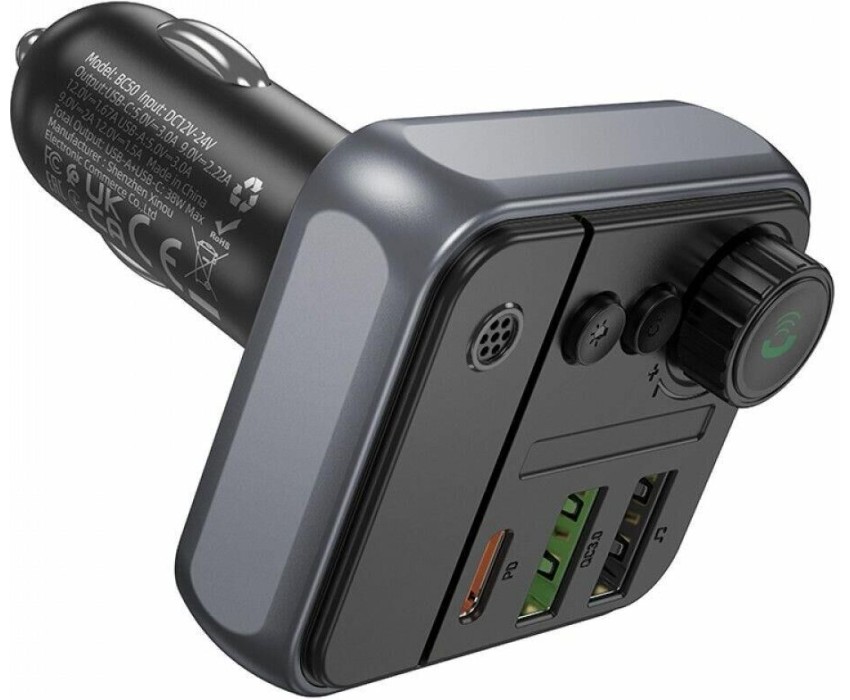 Трансмиттер BOROFONE (6941991115257) BC50 FM-трансмиттер+АЗУ 2USB+1Type-C PD20W+QC3.0 , Black