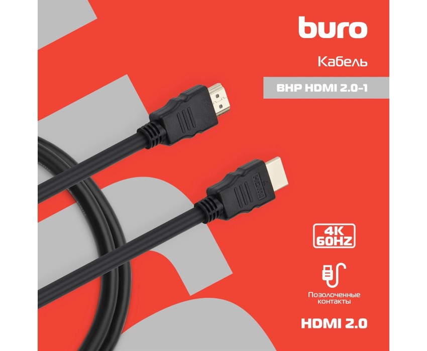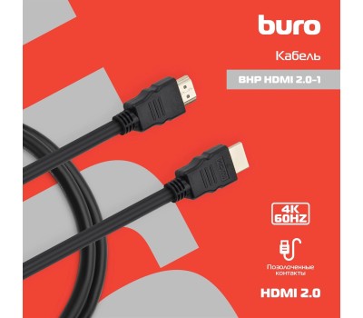 BURO Кабель аудио-видео HDMI 2.0 HDMI (m)/HDMI (m) 1м. позолоч.конт. черный (BHP HDMI 2.0-1)
