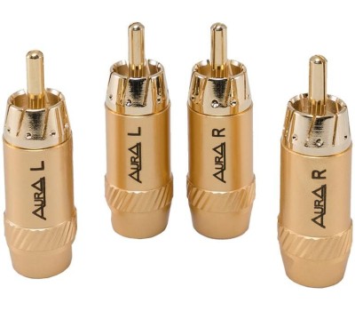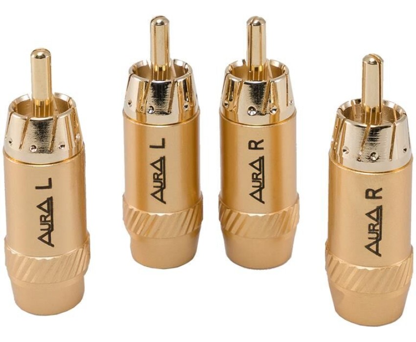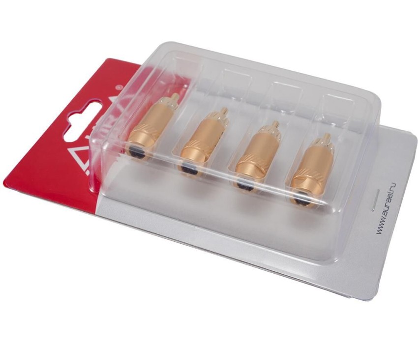 RCA - коннектор для кабеля до 6 мм, позолочен. 2 левых + 2 правых, блистер