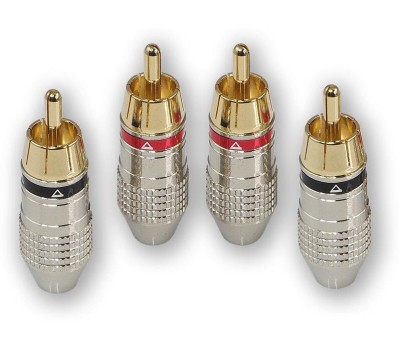 RCA - коннектор для кабеля до 6 мм, 2 красных + 2 черных, блистер