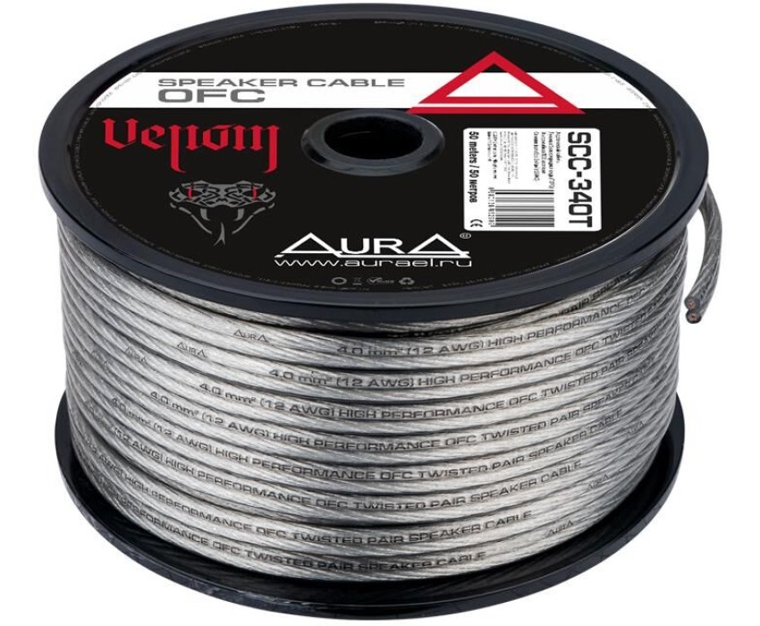 Кабель акустический, OFC, прозрачный, 4мм2, 50м/катушка
