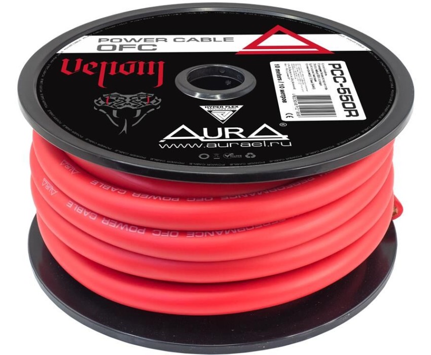 Кабель силовой, OFC, 0/1AWG/50мм2, 10м/катушка, красный