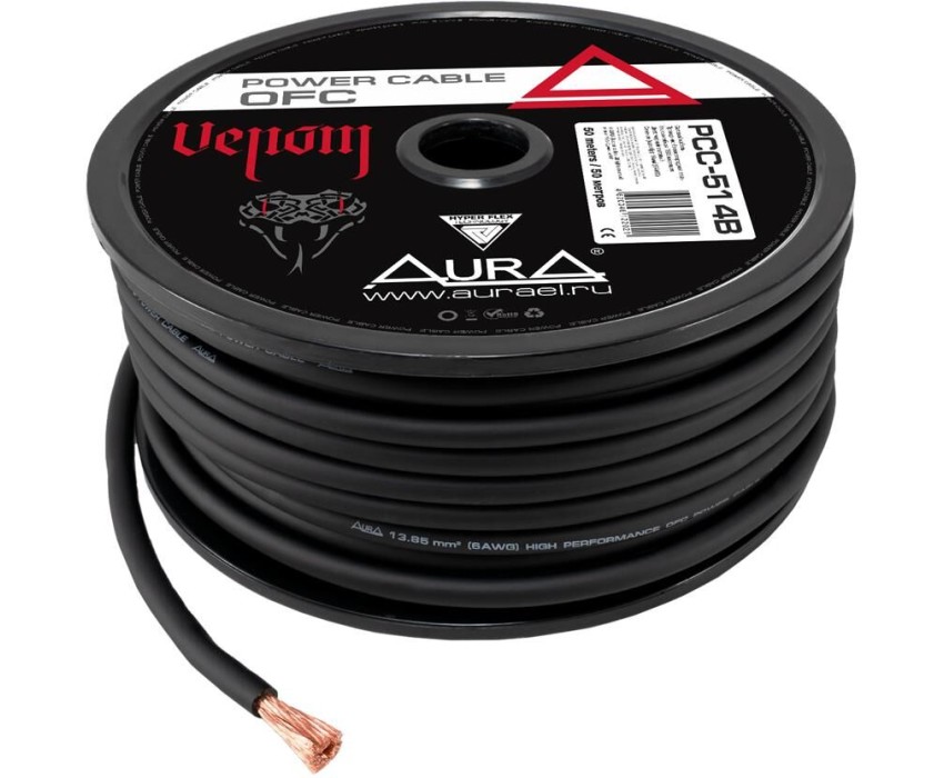 Кабель силовой, OFC, 6AWG/13,85мм2, 50м/катушка, черный