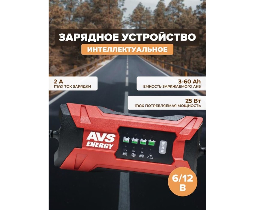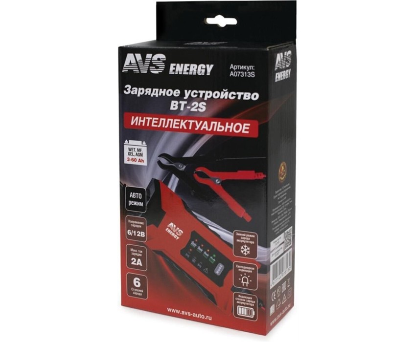 Зарядное устройство AVS BT-2S для автомобильного аккумулятора (2A, 25W) 6/12V (A07313S)
