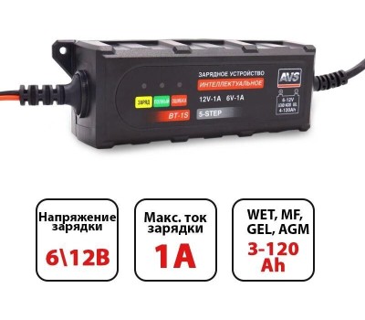 Зарядное устройство AVS BT-1S для автомобильного аккумулятора (1A, 20W) 6/12V