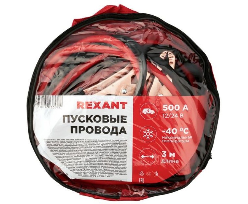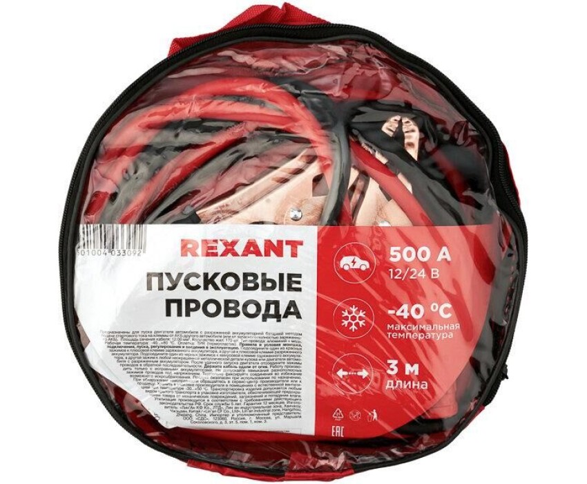 REXANT Провода прикуривания 500А, в чехле на молнии