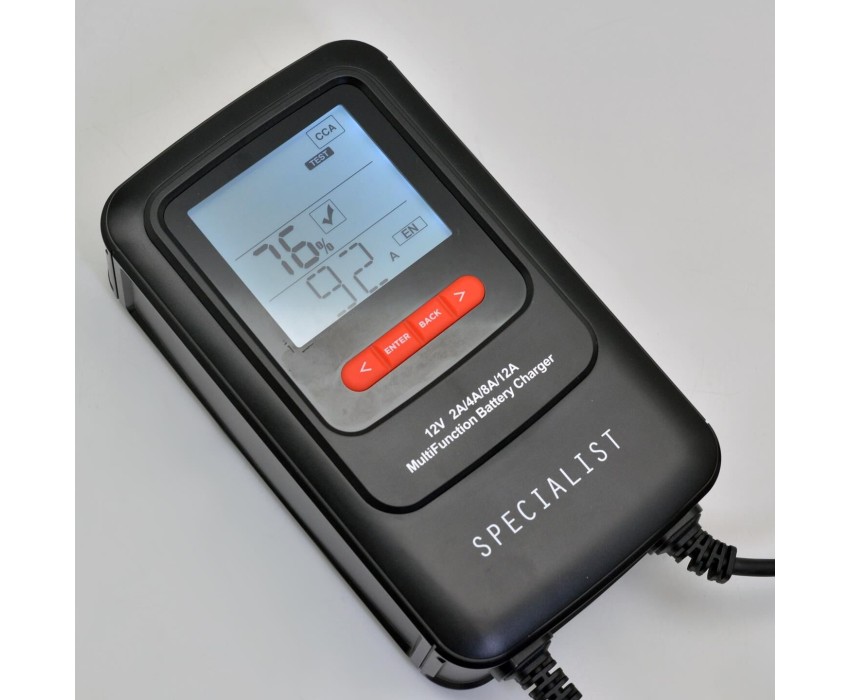 Зарядное устройство BERKUT BC-12A — полностью автоматическое устройство, предназначенное для диагностики, зарядки, ухода и технического обслуживания всех типов свинцово-кислотных аккумуляторных батарей (Сa/Ca, WET, EFB, MF, AGM, VRLA, GEL и LIFEPO4). Теперь пользователь может запустить все процессы диагностики как перед началом зарядки, так и по ее окончании и получить полную картину о состоянии своей АКБ — устройство снабжено многофункциональным ЖК-дисплеем, по которому можно оценить состояние батареи, уровень заряда и пусковых характеристик, а также замерить напряжение от генератора. Пользователь может управлять максимальным током заряда (2A, 4А, 8А или12А) в различных режимах работы. Можно выбрать 6 режимов зарядки: стандартный режим, зимний, режим AGM/EFB, зимняя зарядка для AGM/EFB, режим для кальциевых (Сa/Ca), режим LIFEPO4, а также функция SAVE для сохранения настроек авто. Устройство имеет поэтапный алгоритм работы, безопасно для любого электронного оборудования транспортных средств, имеет высокий уровень защиты от скачков напряжения в электросети и выполнено в надежном влагозащищенном и ударопрочном корпусе. Технические характеристики: - Номинальное напряжение: ~220–240 В, 50 Гц - Напряжение заряда: 14,4 - 14,7 - Минимальный остаточный заряд батареи: не менее 2 B - Максимальный ток зарядки: 2A-4А-8А-12А - Температурный диапазон для зарядки: от -20ºС до +45ºС - Охлаждение: принудительное - Тип зарядного устройства: 9 стадий, автоматический цикл - Типы батарей: все …