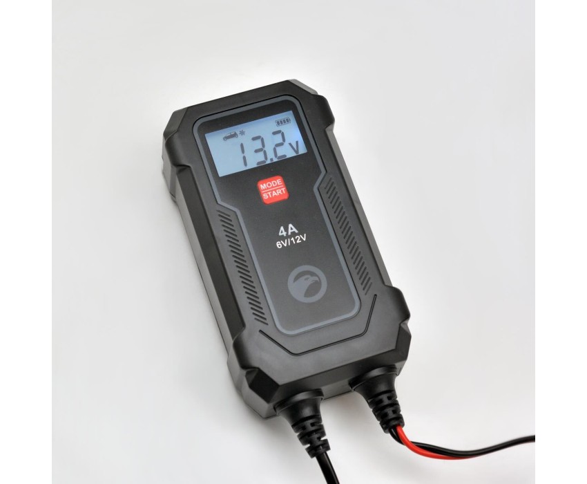 Зарядное устройство BERKUT BC-04A — полностью автоматическое устройство, предназначенное для обслуживания и зарядки 6 и 12-Вольтовых аккумуляторных батарей емкостью от 4 до 90 Ач, используемых в мото- и садовой техники и т.п. Устройство является полностью автоматическим и имеет поэтапный поэтапным алгоритмом зарядки в 9 стадий. BERKUT BC-04A безопасно для электроники транспортного средства и может быть подключено к АКБ, установленной на транспортном средстве, в течение длительного периода времени, для зимнего хранения и круглоготичного использования. Снабжено программой быстрого и бережного ЗАРЯДА, а также памятью последнего режима ЗАРЯДА при отключении питания. Технические характеристики: - Номинальное напряжение: ~220–240 В, 50 Гц - Напряжение заряда: 7,2 - 14,7 В - Минимальный остаточный заряд батареи: не менее 5 B - Максимальный ток зарядки: 4 A - Температурный диапазон для зарядки: от -20ºС до +45ºС - Охлаждение: естественная конвекция - Тип зарядного устройства: 9 стадий, автоматический цикл - Типы батарей: все типы 12-ти вольтовых батарей (Сa/Ca, WET, EFB, MF, AGM, VRLA, GEL и LIFEPO4) - Ёмкость батареи: 4-90 А*ч - Размеры блока: 145x80x47 мм (Д x Ш x В) - Класс защиты: IP44 (влагозащищенность) Технические характеристики: - Номинальное напряжение: ~220–240 В, 50 Гц - Напряжение заряда: 7,2 - 14,7 В - Минимальный остаточный заряд батареи: не менее 5 B - Максимальный ток зарядки: 4 A - Температурный диапазон для зарядки: от -20ºС до +45ºС - Охлаждение: естественная кон…