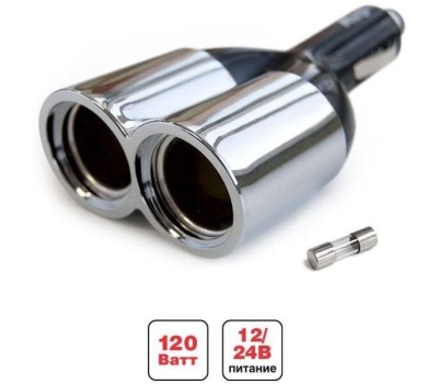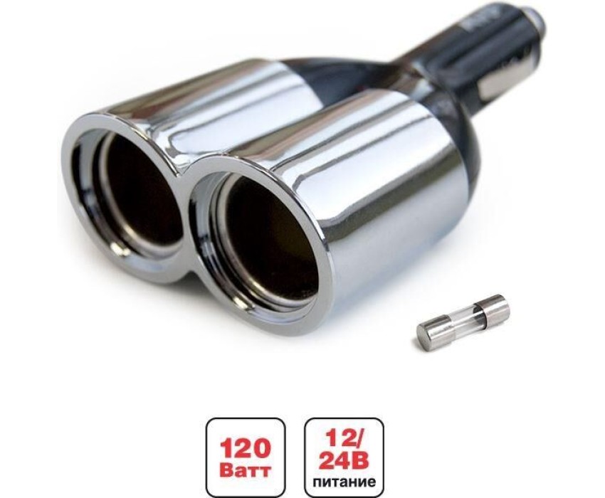 Компактный разветвитель позволяет подключать 2 устройства одновременно в разъем прикуривателя. Крепкое надежное устройство в корпусе из огнестойкого пластика. Защита от короткого замыкания и перепадов напряжения. Работа в сетях с номинальным напряжением 12В и 24В. Универсален для любых автомобилей. Характеристики •Питание: 12/24 В •Мощность: 120 Вт •Максимальный выходной ток: 10 А •Защита от короткого замыкания •Количество гнезд: 2 •Светодиодный индикатор сети •Плавкий предохранитель в корпусе штекера Материал: пластик Комплектация •Разветвитель •Предохранитель