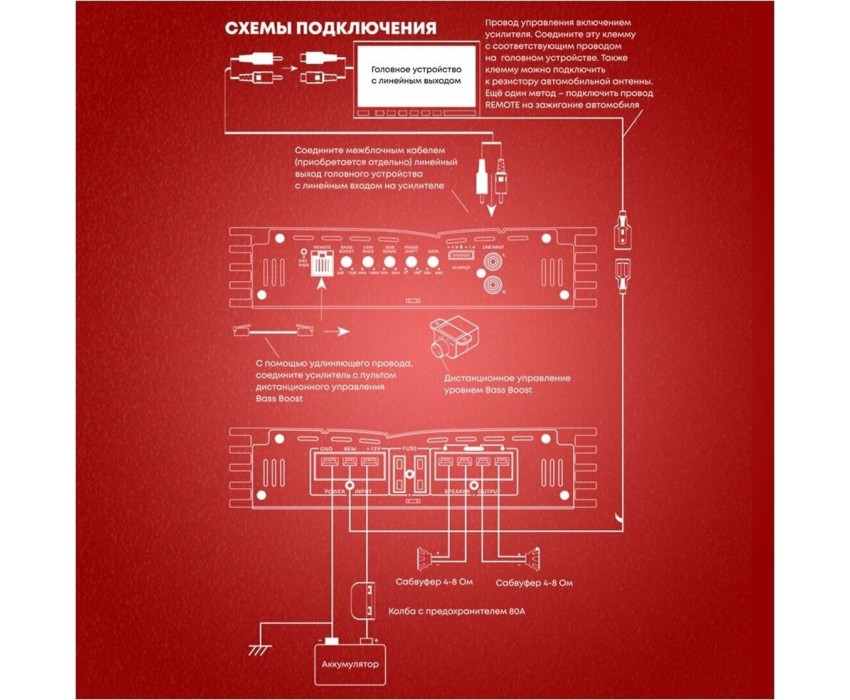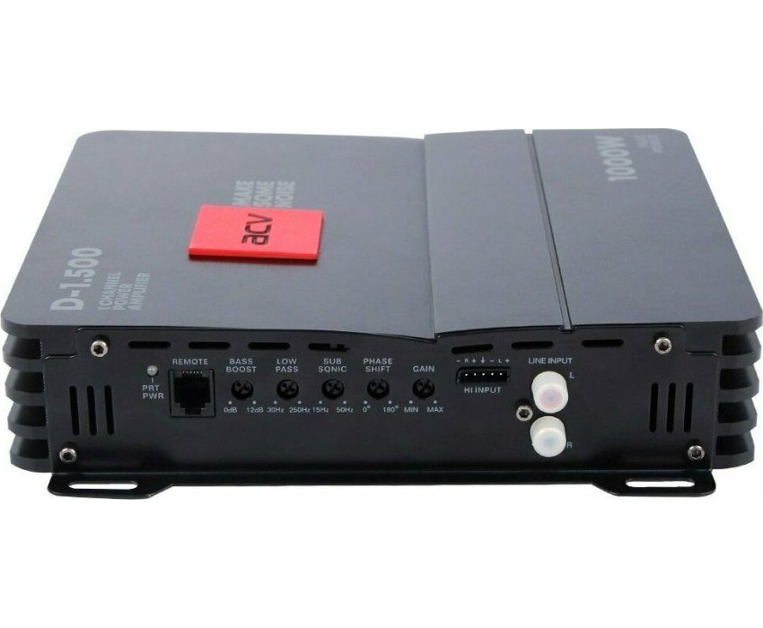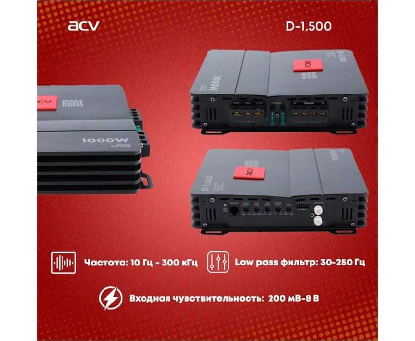 Стабильная работа на нагрузках: 1 Ом Bass Boost: Bass Boost плавный 0-18дБ Номинал предохранителя: 2 х 30А Диапазон частот: 10Гц ~ 300Гц Воспроизведение звука Пиковая мощность: 1000Вт Номинальная мощность 4 Ом: 300Вт х 1 Номинальная мощность 2 Ом: 500Вт х 1 Номинальная мощность 1 Ом: 650Вт х 1 Чувствительность: 200мВ-8В Отношение сигнал/шум: >96дБ Коэффициент гармонических искажений: (THD) @ 1кГц (40м): 0,15% Разделение каналов Разделение каналов: >45 дБ Low pass фильтр: 10-250 Гц Число каналов: 1 Общие характеристики Размеры: 180 x 48 x 220 мм