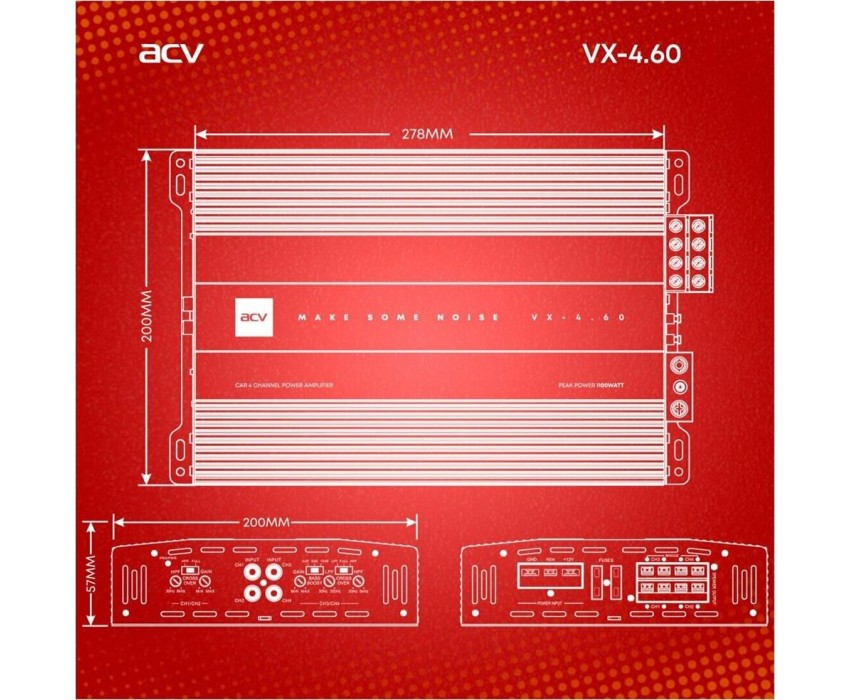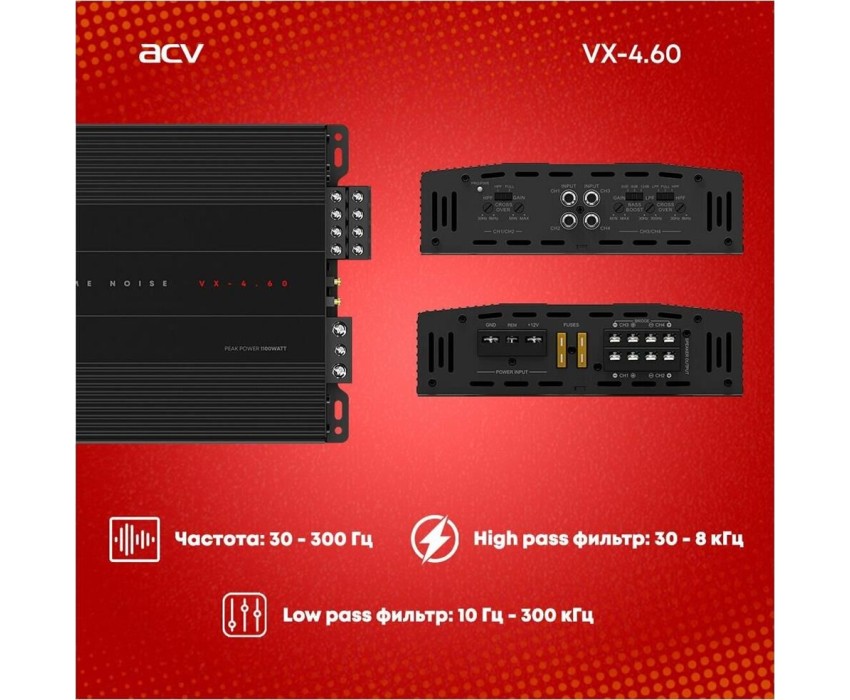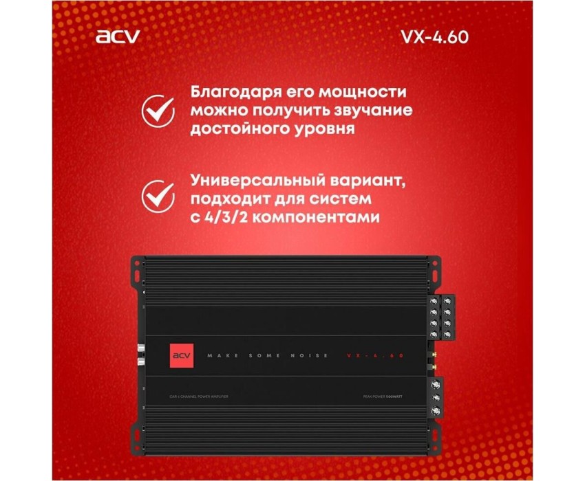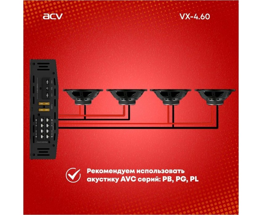 Автоусилитель ACV VX-4.60 4*60Вт/4-3-2 канал/4-2 Ом/High-pass/Low-pass