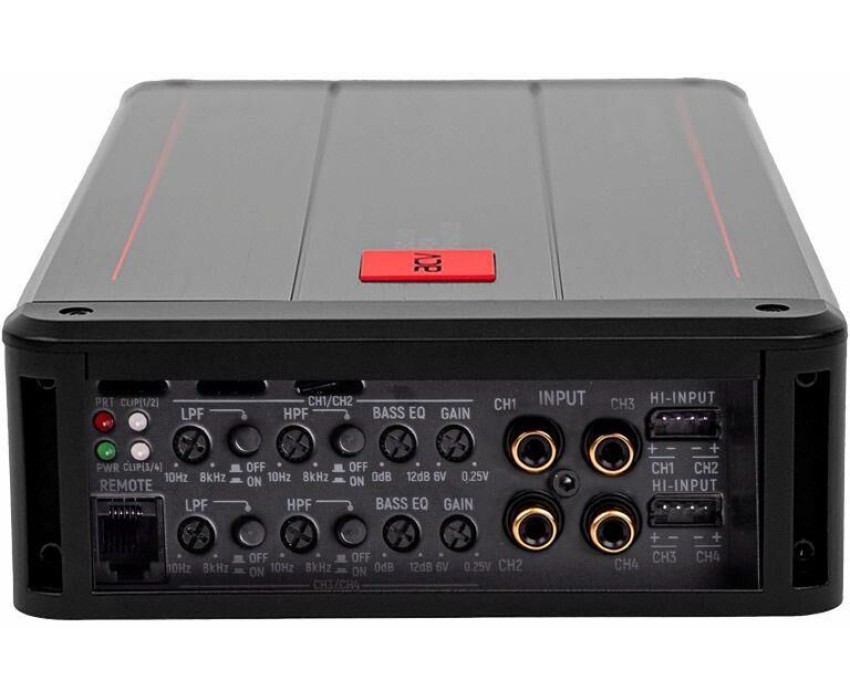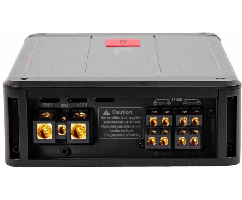 Номинальная мощность 4 Ом: СТЕРЕО 400Вт х 4, MOHO в мостовом включении: 1200Вт х 2 Номинальная мощность 2 Ом: СТЕРЕО 600Вт х 4 Чувствительность: 200мВ – 8В Отношение сигнал/шум: >91 дБ Коэффициент гармонических искажений: (THD) @ 1 кГц (4 Ом) 0,05% Особенности модели Класс усилителя: D Стабильная работа на нагрузке: 2 и 4 Ом Bass Boost: 0~12дБ Диапазон частот: 10 Гц ~ 50 кГц Общие характеристики Размеры: 334x145x52 мм Питание Рабочее напряжение: 10-15В пост. ток Разделение каналов Разделение каналов: >60 дБ Low pass фильтр: 10Гц ~ 8 кГц High pass фильтр: 10Гц ~ 8 кГц Число каналов: 4/3/2