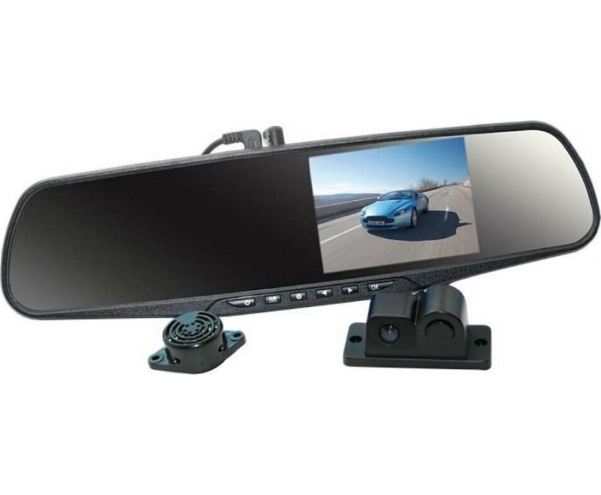 Видеорегистратор встроен в зеркало заднего вида, включает в себя камеру заднего обзора и датчик парковки. Высокое разрешение видеозаписи до 1920х1080р Full HD. Разрешение экрана – 480х272. Разрешение видео задней камеры 720х480. Обзор камер 170 градусов (передний и задний вид ). ЖК-дисплей размером 4.3 дюйма с высоким разрешением для отображения видео во время записи и воспроизведения. Вход для камеры заднего вида. Циклическая запись. Синхронная запись с 2-х камер. Датчик движения. Запись звука. G-сенсор (автоматическая блокировка файла во время аварии). Автоматическое начало записи при включении автомобиля.