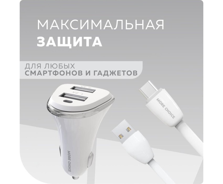 MORE CHOICE AC22m АЗУ 2USB 2.4A для micro USB White