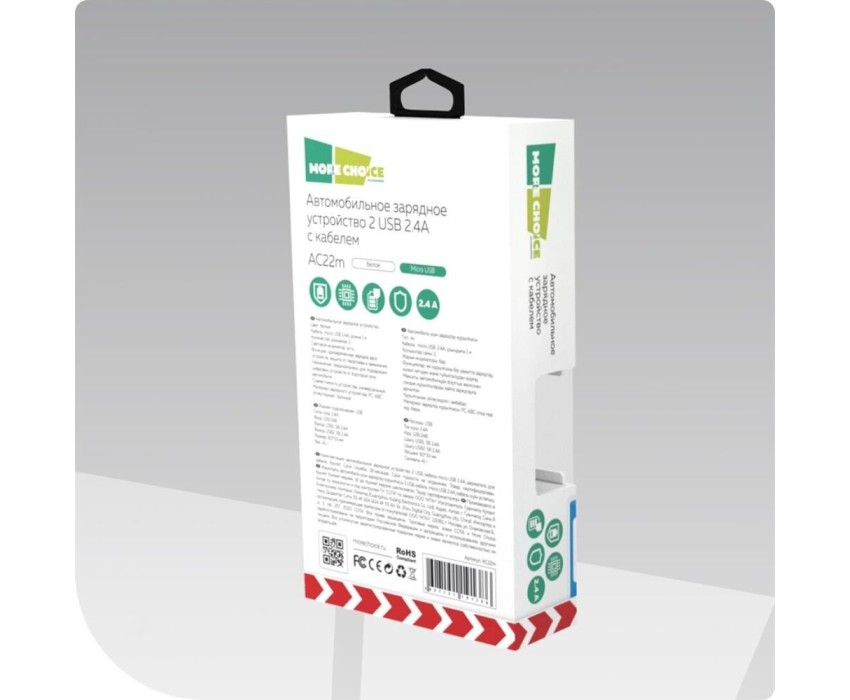 АЗУ MORE CHOICE (4627151191386) AC22m 2USB 2.4A для micro USB White
