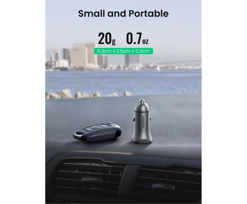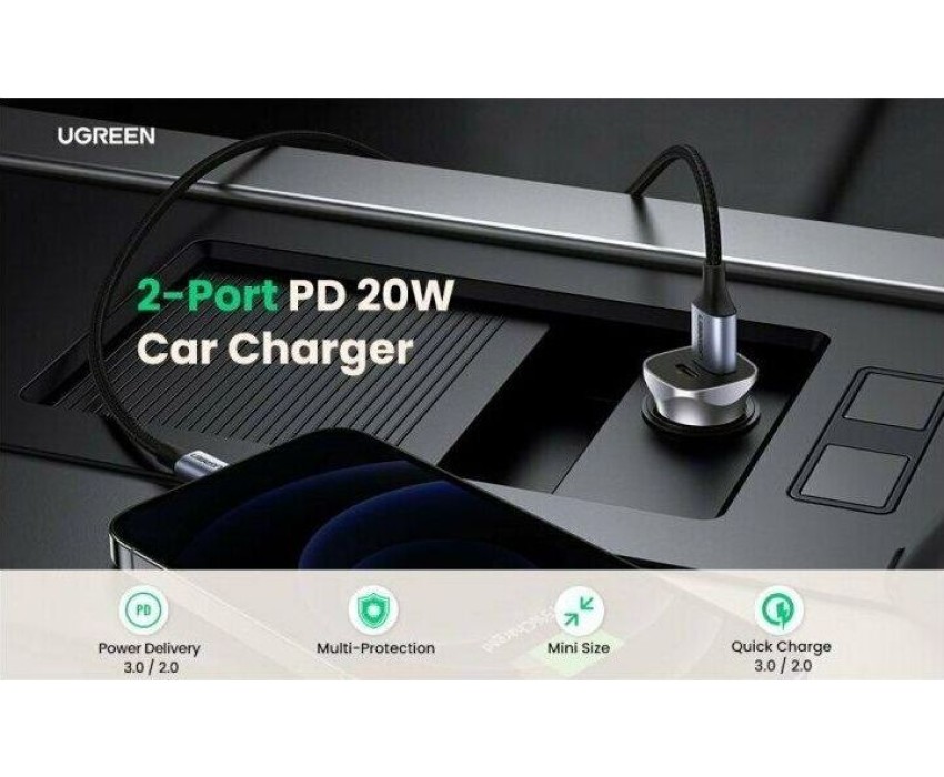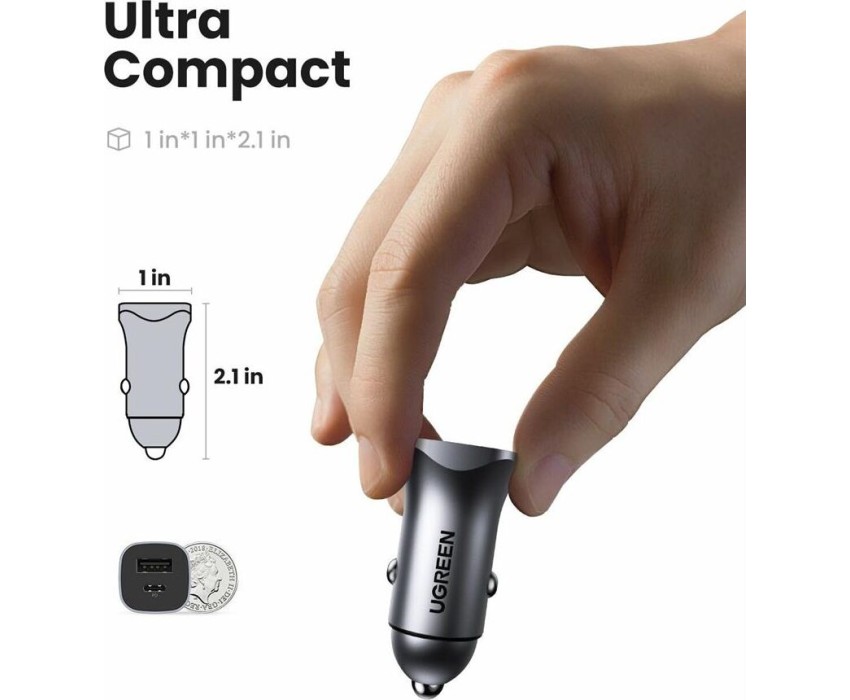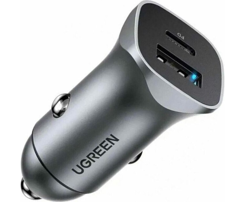 UGREEN Автомобильное зарядное устройство CD130 (30780) USB-C PD+USB-A QC 24W Fast Car Charger. Цвет: серый космос