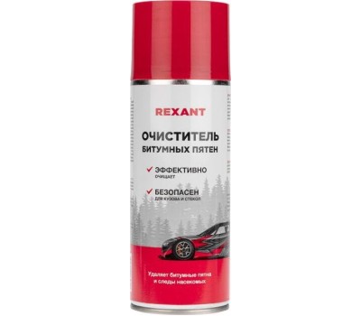 Очиститель REXANT предназначен для удаления битумных, жировых и масляных пятен, консервационных покрытий, следов насекомых с кузова и стекол автомобилей, мотоциклов и другой техники. Очиститель легко наносится на поверхность, эффективно растворяет и удаляет пятна и мовиль. Не оказывает вредного воздействия на краску, пластик, резину и хромированные части автомобиля.