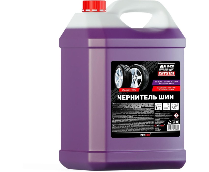 Эффективное средство для восстановления внешнего вида автомобильных покрышек и других резиновых элементов автомобиля. Возвращает глубокий черный цвет, обновляет внешний вид, придает глянцевый блеск. Создаваемая защитная плёнка обладает антистатическими свойствами, защищает от пыли и УФ-излучения. Также может использоваться для обработки пластиковых, резиновых и виниловых поверхностей. Способ применения: Концентрат разбавить с водой в пропорции 350-500 г/л. Состав нанести на поверхность с помощью распылителя или губки. После нанесения равномерно растереть состав по поверхности и дать высохнуть. Концентрат Объем: 5 л
