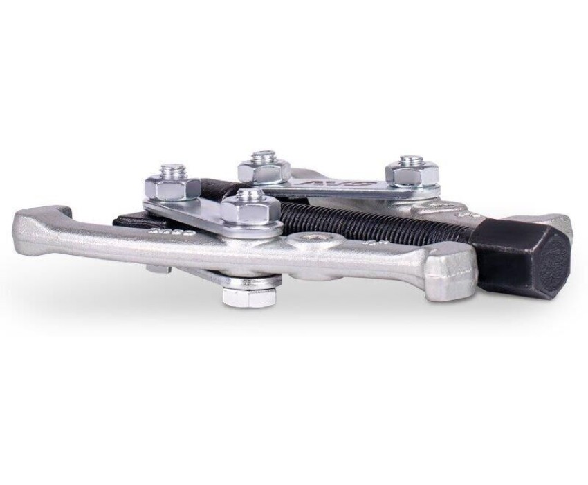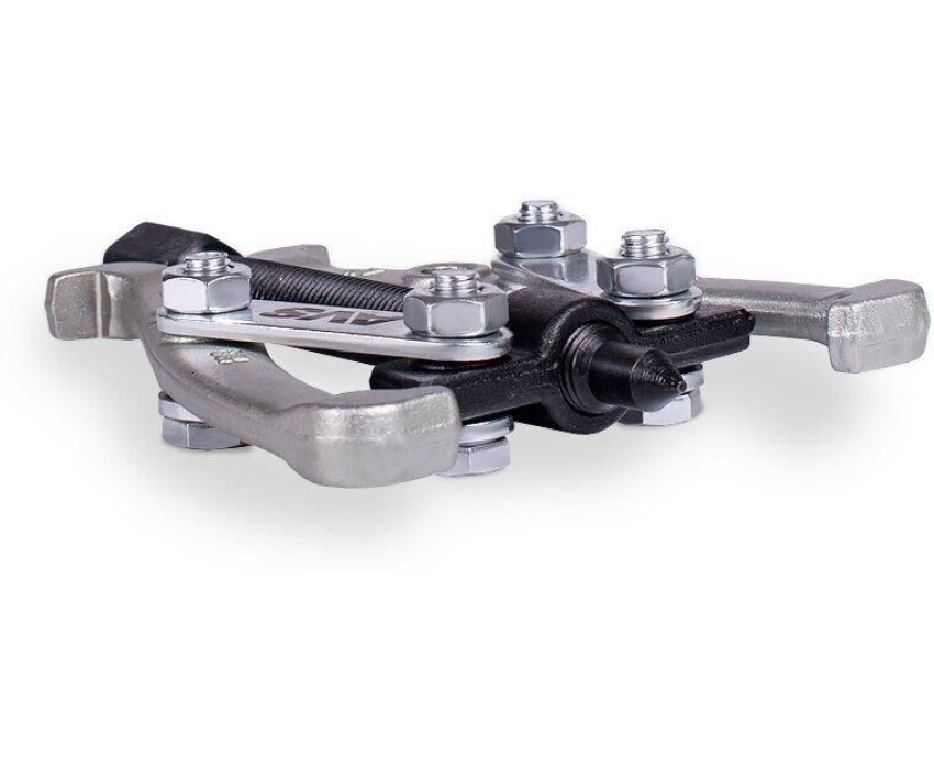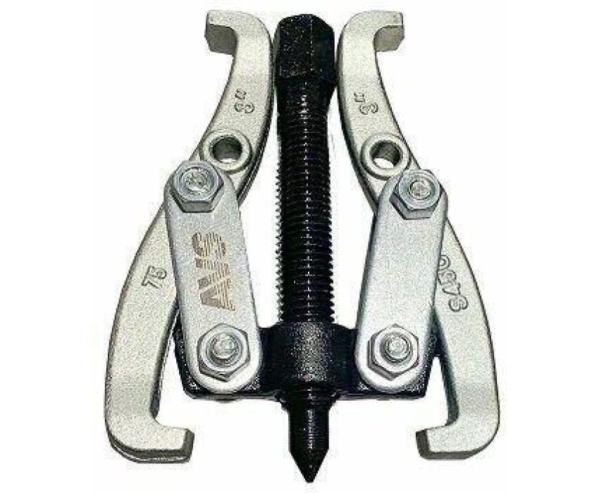 Применяется для демонтажа подшипников, шкивов, шестерней и других деталей, имеющих посадку с натягом. Шарнирная конструкция съемника надежно удерживает демонтируемую деталь. Дополнительные крепежные отверстия позволяют изменять конфигурацию съемника. Двусторонние переставные лапы дают возможность как внешнего, так и внутреннего захвата деталей. Длина: 100 мм Рабочий диапазон (наружный диаметр подшипника): 50-100 мм Материал: Высокопрочная углеродистая инструментальная сталь (S45C) Прочность: 38-42HRC Покрытие: цинк