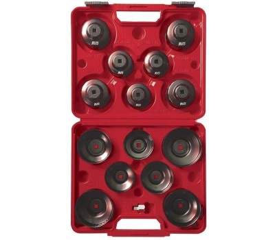 Набор предназначен для снятия и установки корпусных масляных фильтров двигателей внутреннего сгорания. Съемники выполнены в форме чашек, что исключает повреждение масляного фильтра при его снятии и установке. Возможность использовать привод с посадочным квадратом 1/2"; 3/8"; гаечный ключ или торцевую головку на 21 мм. Каждая чашка выполнена из прочного металла и покрыта порошковой эмалью для предотвращения появления коррозии. Для удобства на каждой чашке имеется маркировка ее размера В набор входят съемники, подходящие для наиболее популярных типоразмеров масляных фильтров Состав: • Съемник "чашка" - 14 шт; Размер (мм) - кол-во граней: 1. 65-14 2. 65/67-14 3. 68-14 4. 73-14 5. 74/76-14 6. 74/76-15 7. 76-12 8. 75/77-15 9. 78-15 10. 80/82-15 11. 86-16 12. 93-15 13. 93-36 14. 100-15 • Переходник F1/2"DR*М3/8"DR - 1 шт. Вес: 2,5 кг