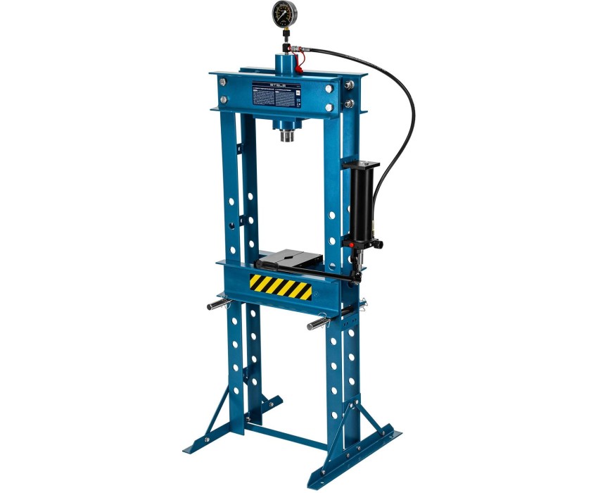 Гидравлический пресс Stels 52304 с манометром позволяет прикладывать усилие до 30 тонн. Предназначен для запрессовки и выпрессовки деталей, работы со штифтами, втулками и т.д. Используется для выполнения сборочных и разборочных работ в гараже, автосервисах и предприятиях промышленного типа. Преимущества Точный контроль прилагаемого усилия — при помощи глицеринозаполненного манометра можно отслеживать давление, чтобы избежать перегрузки. Работа с деталями разного размера — высота положения стола регулируется, предусмотрена возможность установки в одном из 9 положений. Точное позиционирование штока — цилиндр можно перемещать в горизонтальном направлении. Удобная эксплуатация — гидравлический насос с ручным приводом обеспечивает плавный ход штока. Разборная конструкция — пресс удобен в хранении и транспортировке.
