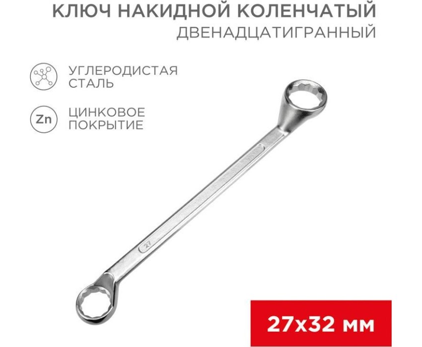 REXANT (12-5865-2) Ключ накидной коленчатый 27х32мм, цинк