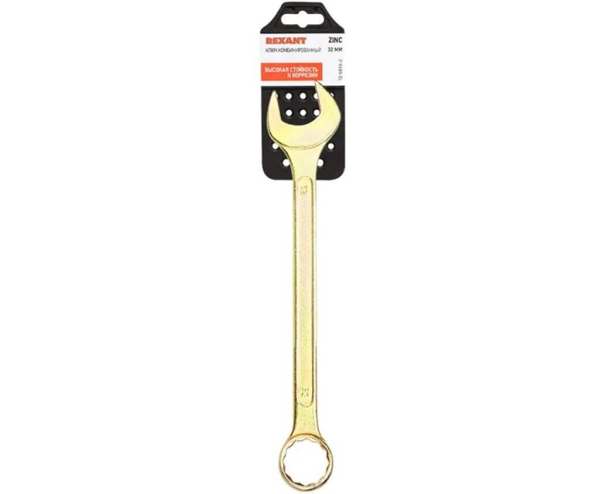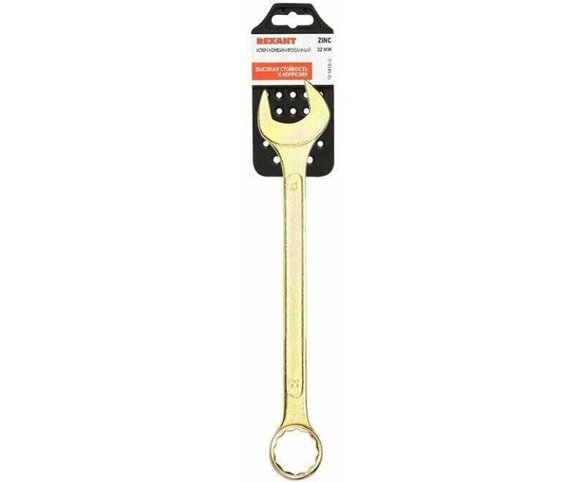 Ключ гаечный REXANT (12-5818-2) Ключ комбинированный 32мм, желтый цинк