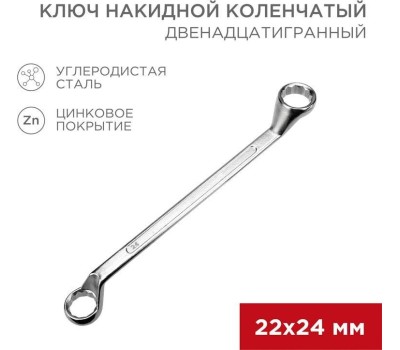 Ключ гаечный REXANT (12-5863-2) Ключ накидной коленчатый 22х24мм, цинк