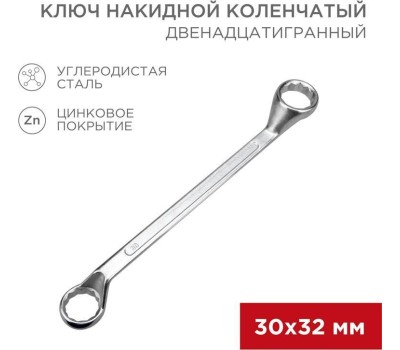 Ключ гаечный REXANT (12-5866-2) Ключ накидной коленчатый 30х32мм, цинк