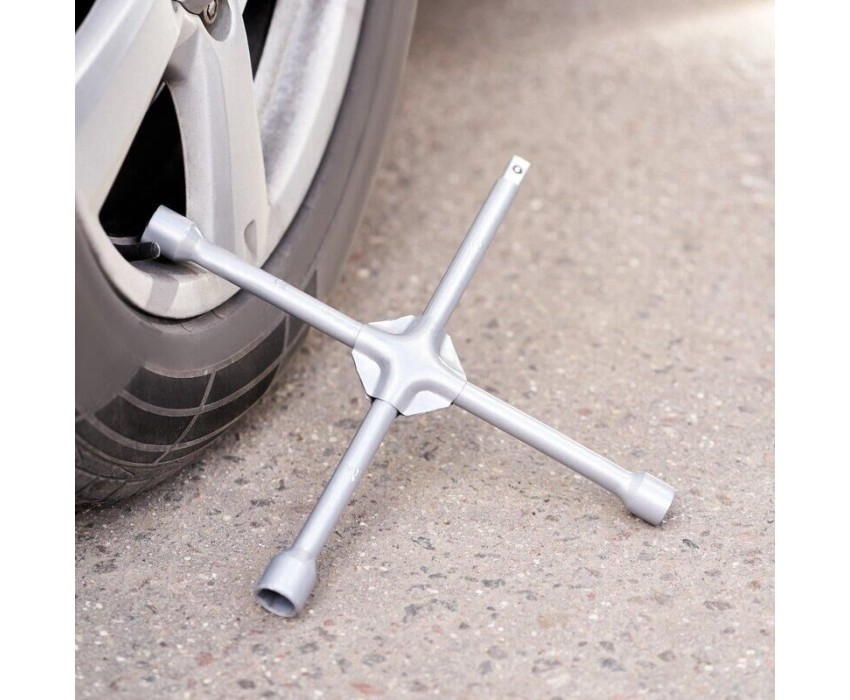 Ключ-крест баллонный предназначен для смены колес грузовых или легковых автомобилей. Усиленная крестовая конструкция обеспечивает надежность применения. Инструмент изготовлен из высококачественной углеродистой стали 45. Размер головок: 17х19х21мм х головка 1/2". Твердость материала рабочих частей ключа составляет 41 HRС.